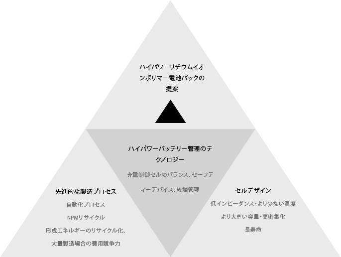 材料開発 >セルデザイン及び大量製造 > 電池パッキング技術 > システム応用n